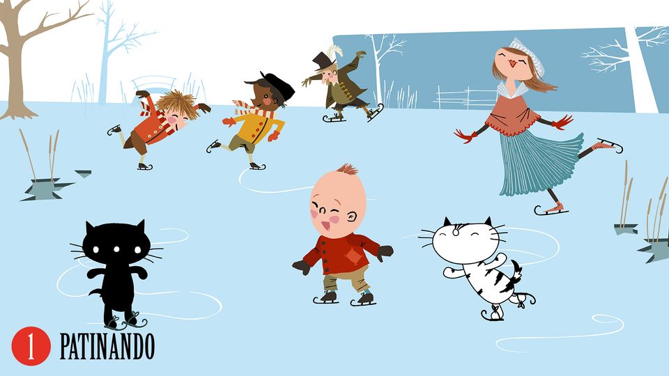 Cuando Pim y Pom salen a patinar en el "Paisaje invernal con patinadores" de Avercamp, chocan con el pequeño Derek, que está triste porque no se le da bien patinar. Pim y Pom ayudan a Derek a su manera, para que pronto se dé cuenta de que puede patinar. Si cree que puede.