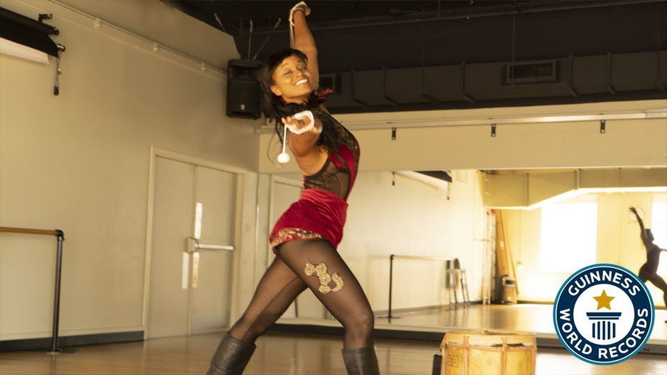 The most floor taps with boleadoras in one minute is 385, and was achieved by Sarah Louis-Jean (Canada) in Montreal, Quebec, Canada, on 5 July 2019.