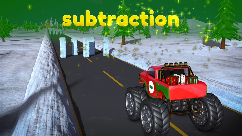 Christmas Subtracting - Learn Math for Kids with Monster Trucks and Lizzy the Dog