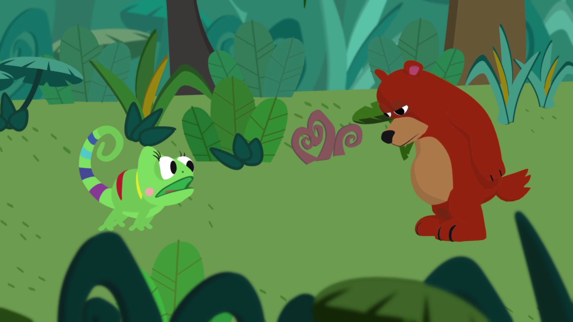 Clara is an extraordinary chameleon girl. She lives in a jungle in her tiny house and by changing her color, she can give back the right colour of falsely colored objects and living creatures.