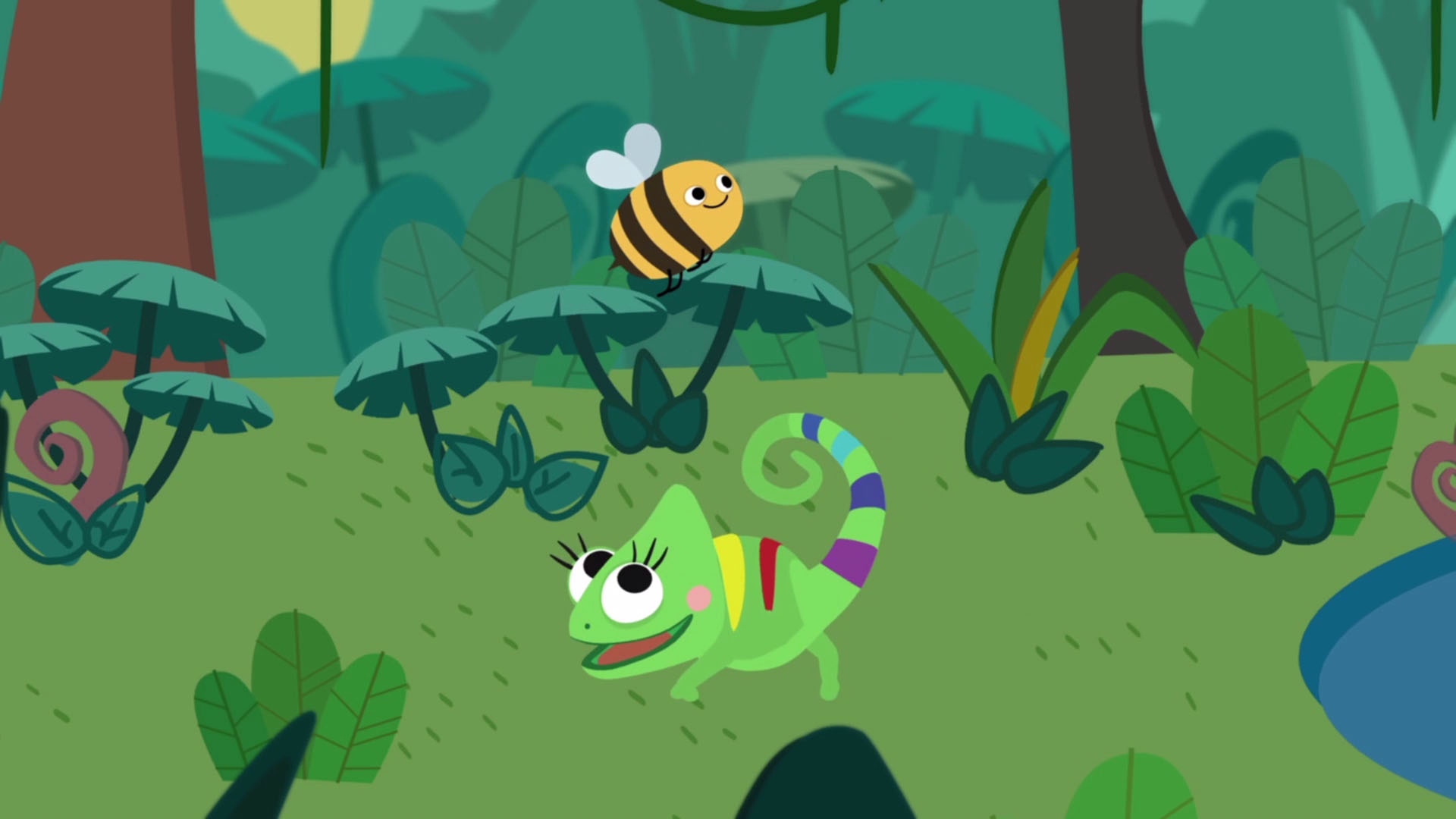 Clara is an extraordinary chameleon girl. She lives in a jungle in her tiny house and by changing her color, she can give back the right colour of falsely colored objects and living creatures.