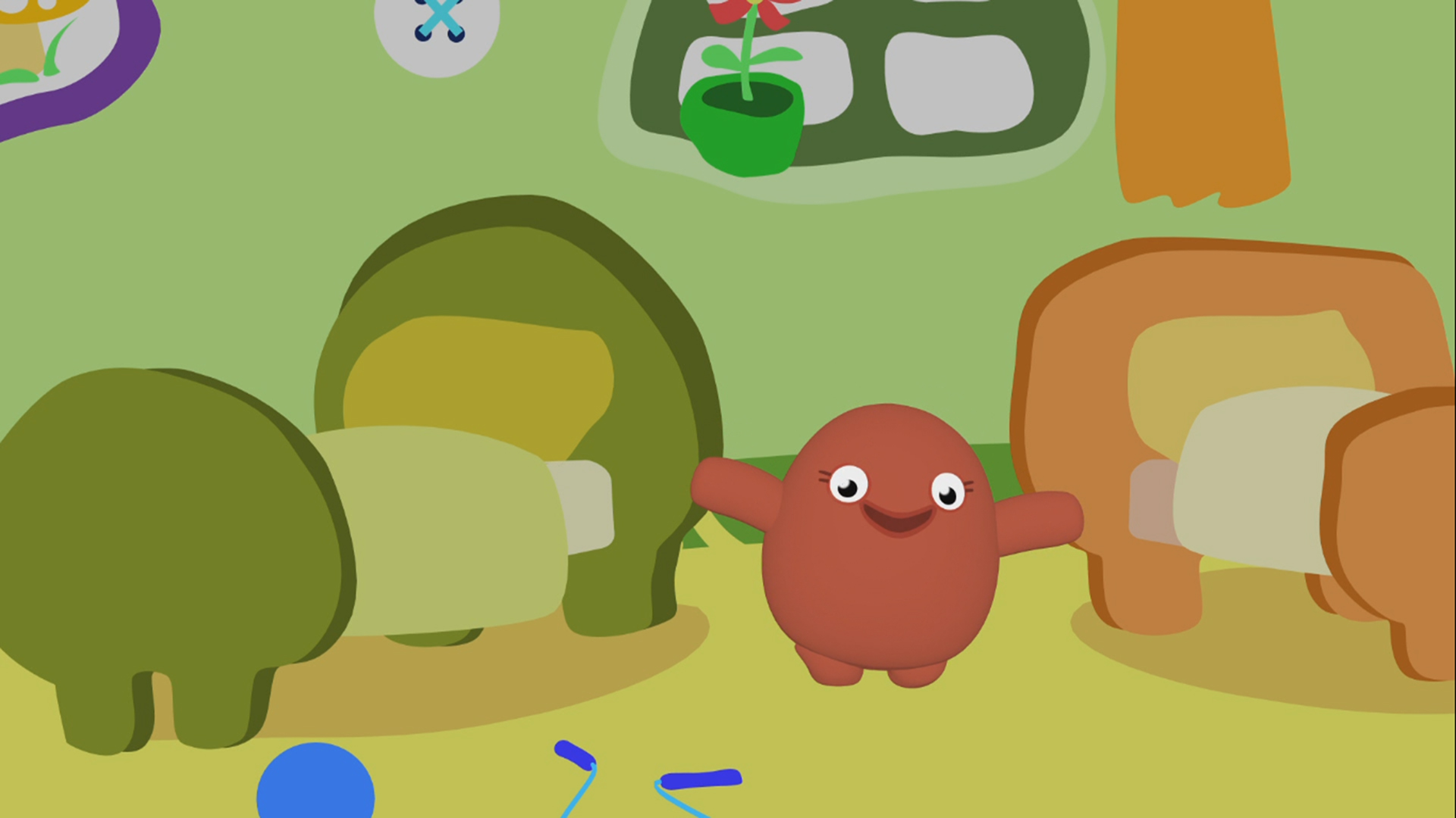 Cucu, I'm here! shows the adventures of two cute imaginary friends, Peeky-Pink and Peeky-Blue, playing hide and seek games all the time. Their life is full of playing and laughter!