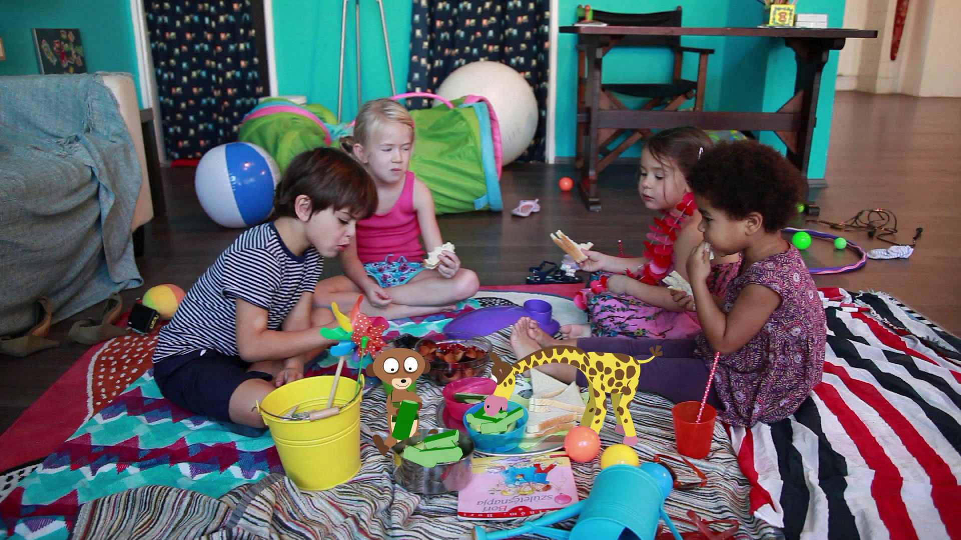 Two friends, Kiteko, the goofy giraffe, and Umi, the playful meerkat observe the everyday life of toddlers. From the children they can learn a lot: about everyday activites, field trip adventures and making lots of fun while playing.