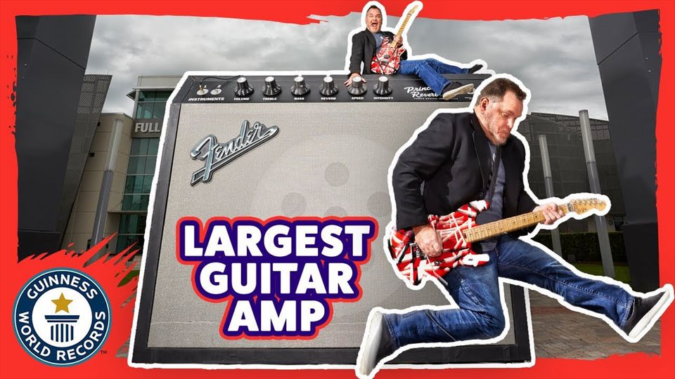 The largest guitar amplifier measures 3.06 m (10 ft 0.47 in) long, 2.47 m (8 ft 1.24 in) tall, and 1.30 m (4 ft 3.18 in) wide, achieved by Full Sail University (USA) at the Camping World Stadium in Orlando, Florida, USA, on 30 June 2017.