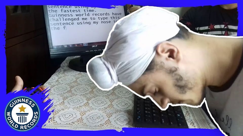 Davinder Singh (India) broke the record for the Fastest time to type using the nose. To complete the challenge Davinder had to type the 103 character text 'Guinness world records have challenged me to type this sentence using my nose in the fastest time'.