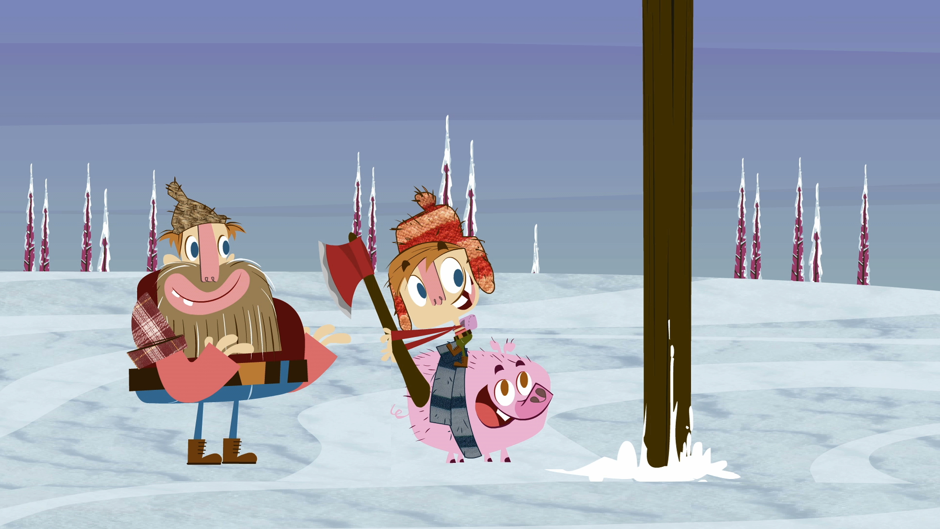 Vigoras is showing to Ivick how to cut down a tree. There is a proper technique to be followed, and one special rule he must observe: always plant two trees for every tree you cut. Ivick's technique is right, but his results vary a little.