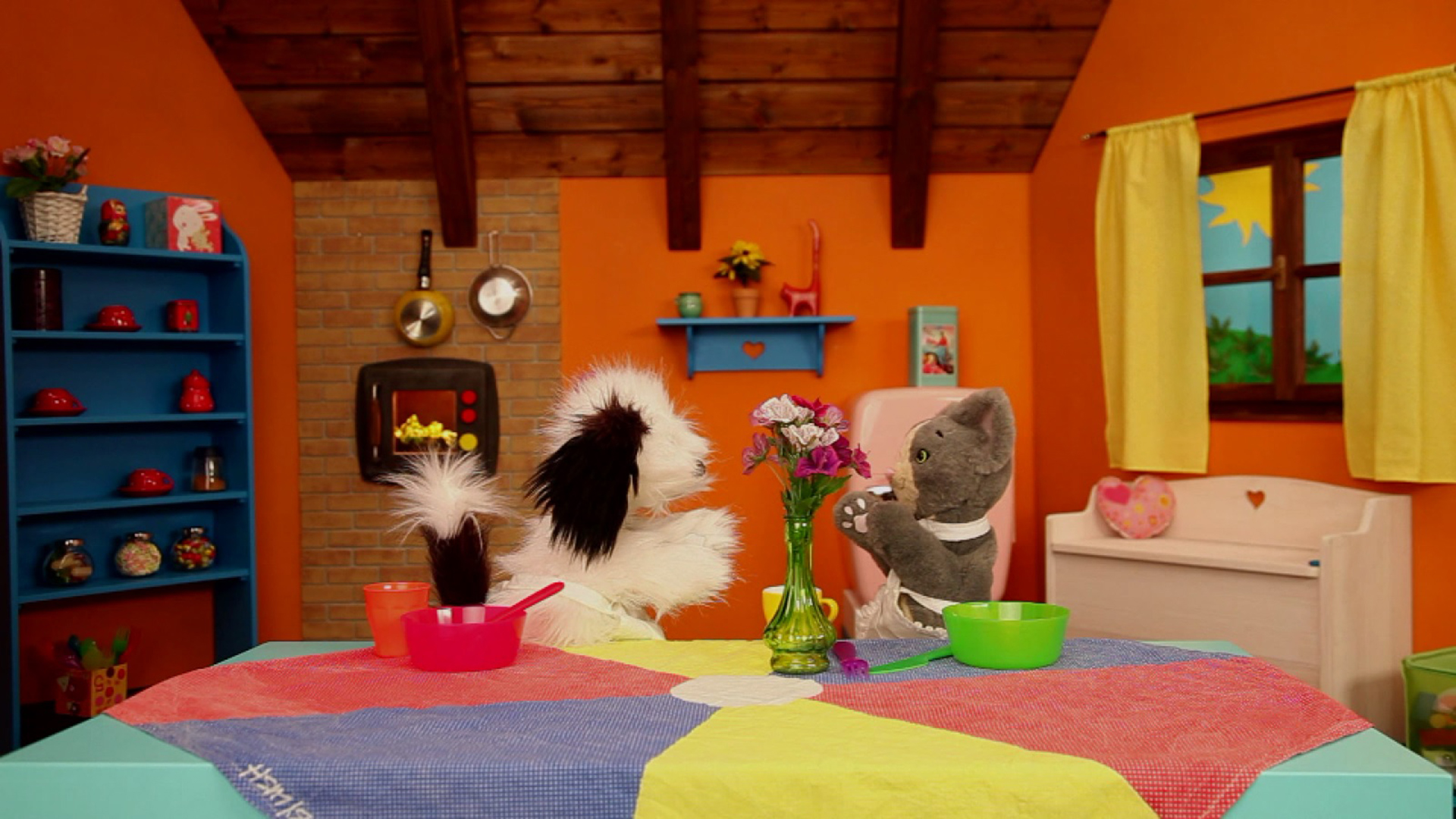 The series gives us a peek into the everyday life of two cute animal puppets. The two friends have a lovely house with a garden around which they work as parents do, and play as our little viewers play.