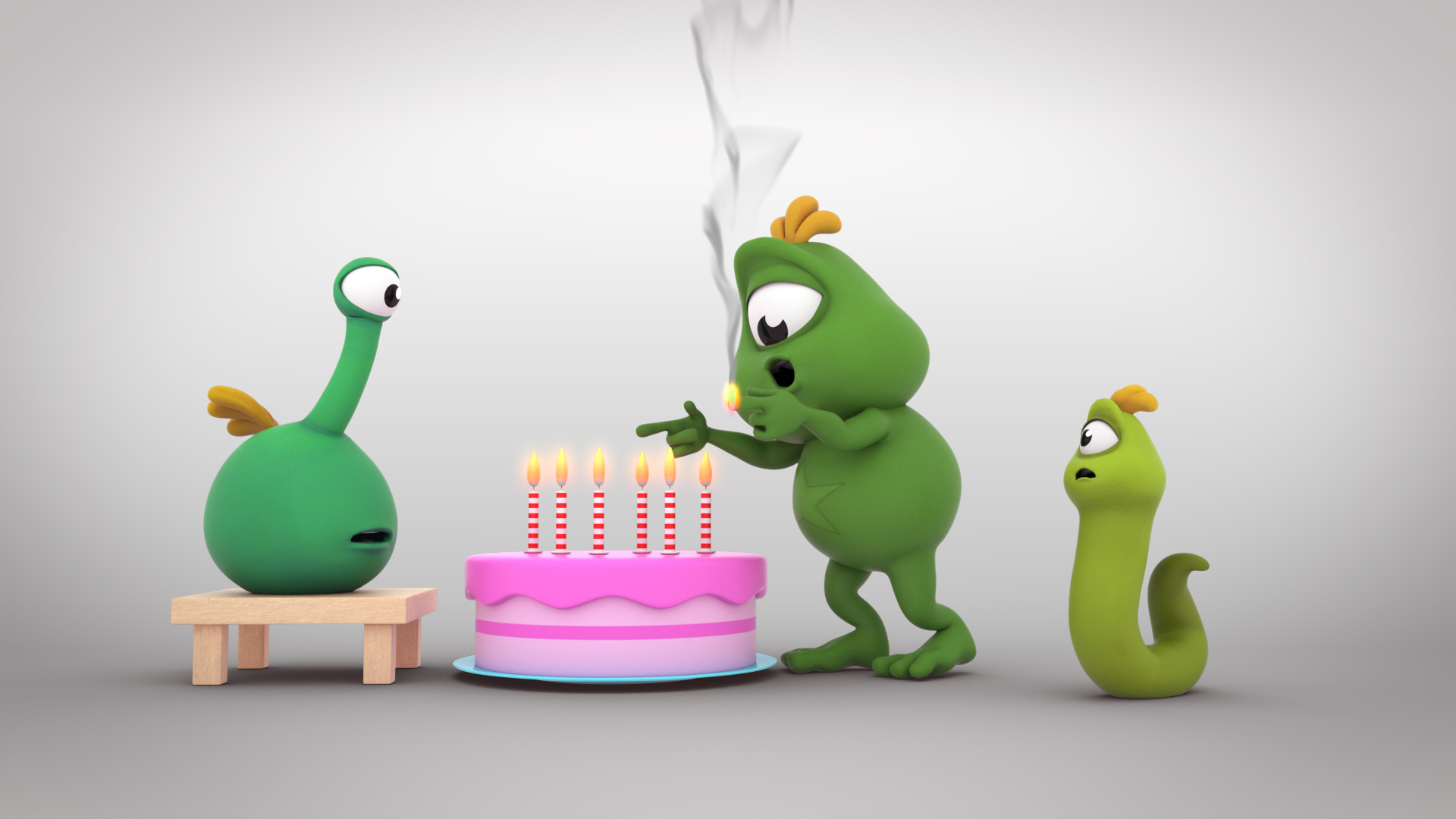 Captain Migol and Drod are singing a song for Popodom´s birthday, but the celebration turns into a disaster when Migol burns his fingers on the candles by accident.