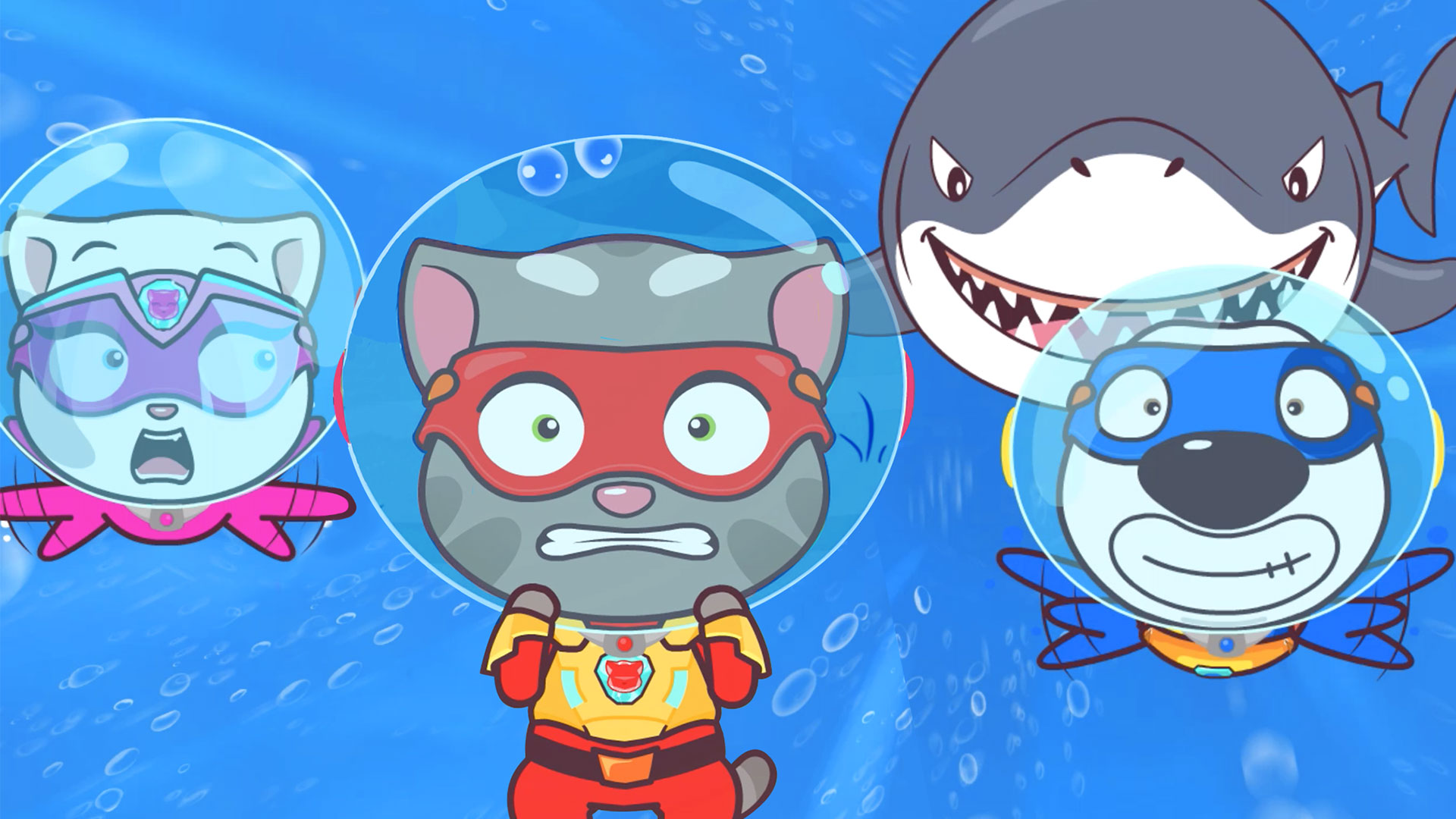 La tortuguita marina de Talking Ginger se ha perdido y los Talking Tom Heroes se lanzan a la acción. ¡No se detendrán ante nada! No siquiera ante monstruos submarinos...