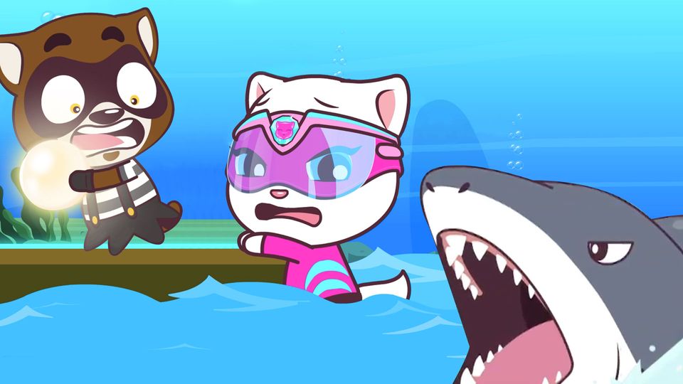 ¡Un día en el acuario da un giro de miedo cuando se escapa un tiburón! Pero eso no es todo. ¡El ladrón Mapache ha regresado y se ha robado la perla más grande que el equipo haya visto nunca!