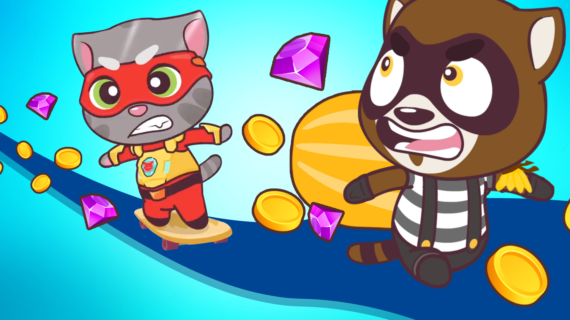 ¡El plan del ladrón Mapache para robar el tren es infalible! O al menos eso es lo que él piensa... ¡No contó con que los Talking Tom Heroes le alcanzarían!